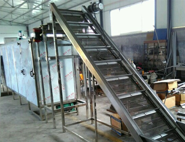 網(wǎng)帶式烘干機(jī)是如何工作的:網(wǎng)帶式烘干機(jī)是利用鋼網(wǎng)作為傳輸帶運(yùn)載物料進(jìn)行連續(xù)烘干的干燥設(shè)備由于傳輸帶是網(wǎng)狀,所以對(duì)烘干規(guī)則或不規(guī)則各種塊狀物(如:煤塊、各種礦粉成型快、食品、蔬菜等)適宜。本機(jī)可以和其他設(shè)備配套使用。也可以單獨(dú)使用。該設(shè)備可廣泛用于農(nóng)業(yè)、冶金、建材、陶瓷、化肥、化工等行業(yè),并且網(wǎng)帶式烘干機(jī)也是食品和蔬菜進(jìn)行干燥加工的設(shè)備。