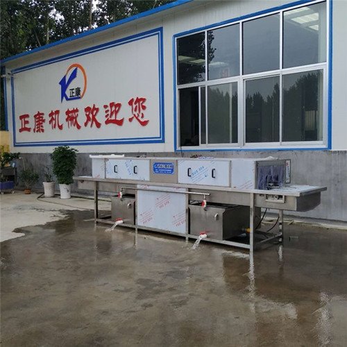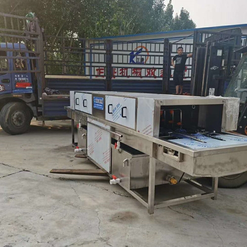 塑料托盤清洗機(jī)是根據(jù)楊總的托盤尺寸,特意加工而成的。兩段式的清洗方式,段采用電加熱的方式,用熱水清洗更利于油污的清除,客戶也可加堿水清洗。第二段是高壓循環(huán)泵清水沖洗。托盤清洗機(jī)采用四面噴淋的方式,對筐子進(jìn)行的沖洗,很好的解決了工人的工作量,省時省力,且水循環(huán)利用,也很好的節(jié)約了能源。
