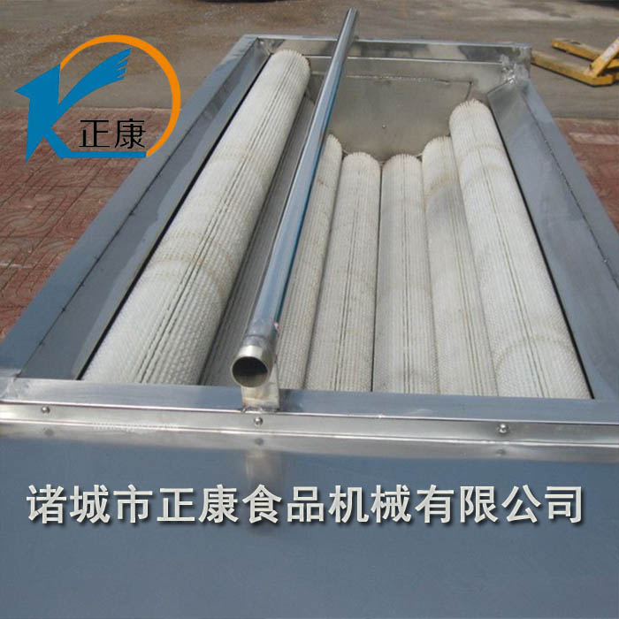 設(shè)備除電機(jī)、軸承等標(biāo)準(zhǔn)件外均采用不銹鋼SUS304/2B材料制作,完全符合出口食品衛(wèi)生要求。設(shè)備中設(shè)有氣泡發(fā)生裝置,使物料呈翻滾狀態(tài),去除產(chǎn)品表面農(nóng)殘的功效,同時(shí)可加入適量的藥劑,進(jìn)行消毒固色。漂浮物可以從溢流槽溢出,沉淀物從排污口排出,以達(dá)到清洗的目的。