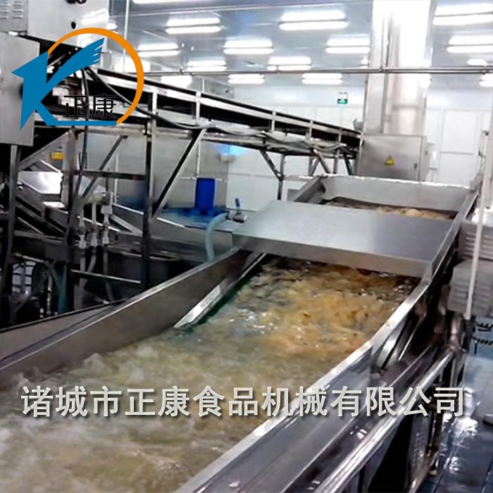 機架采用SUS304不銹鋼制作,符合食品出口標準,流水線中各單機可根據(jù)用戶各自不同的加工特點量身定制,很大程度滿足工藝要求,清洗機采用高壓氣泡水浴清洗,清洗能力大,洗凈率高且不損傷物料,經(jīng)過旋翻至輸送網(wǎng)帶,在網(wǎng)帶上進行高壓水流清洗傳送到挑選平臺,進行公共分揀。