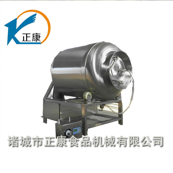 真空滾揉機是在真空狀態(tài)下,利用物理沖擊原理,讓肉塊或肉餡在滾筒內(nèi)上下翻動,相互撞擊、摔打,從而達到按摩、腌漬作用。腌漬液被肉充分地吸收,增強肉的結(jié)合力及彈性,提高產(chǎn)品的口感及斷面效果;可以增強保水性,增加出品率;可以改善產(chǎn)品的內(nèi)部結(jié)構(gòu)。新一代的全自動真空滾揉機除具有真空滾揉機的特點外,還具有電腦控制與變頻技術(shù)的功能。更新增加了遙控操作系統(tǒng),是機器使用更安全,更方便,更加節(jié)能。整機采用不銹鋼制造,結(jié)構(gòu)緊湊,滾筒兩端均采用旋壓式封帽結(jié)構(gòu),增加滾筒內(nèi)的摔打空間,使?jié)L揉產(chǎn)品的效果均勻,噪音小,性能可靠,操作簡便,使用效率更高。
