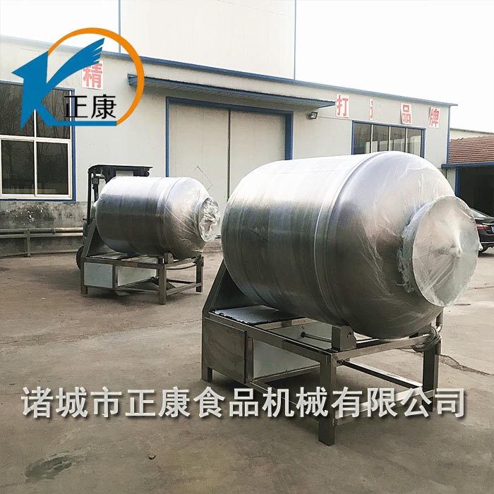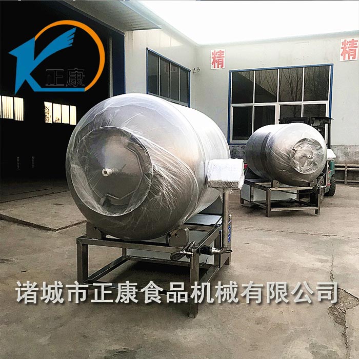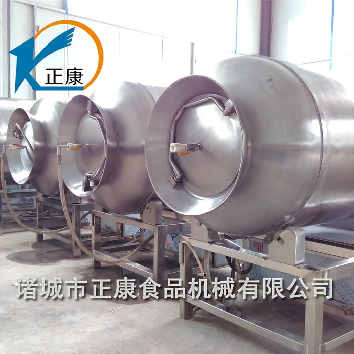 真空滾揉機(jī)是在真空狀態(tài)下,利用物理沖擊的原理,讓肉在滾筒內(nèi)上下翻動,相互撞擊、摔打,達(dá)到按摩、腌漬作用,使肉均勻的吸收腌漬,提高肉的結(jié)著力及產(chǎn)品的彈性,通過滾揉、按摩能使肉體蛋白質(zhì)分解成水溶性蛋白,易被人體吸收,同時能使添加料(淀粉等)與肉體蛋白質(zhì)互為融合以達(dá)到肉質(zhì)變嫩,口感好,出口率高。本真空滾揉機(jī)機(jī)具有肺呼吸功能,讓產(chǎn)品在滾筒內(nèi)膨脹、縮小了往復(fù)運(yùn)動,改善了肉組織的結(jié)構(gòu),提高了切面效果。一般真空滾揉機(jī)的真空度為零點零四到零點零八兆帕斯卡。