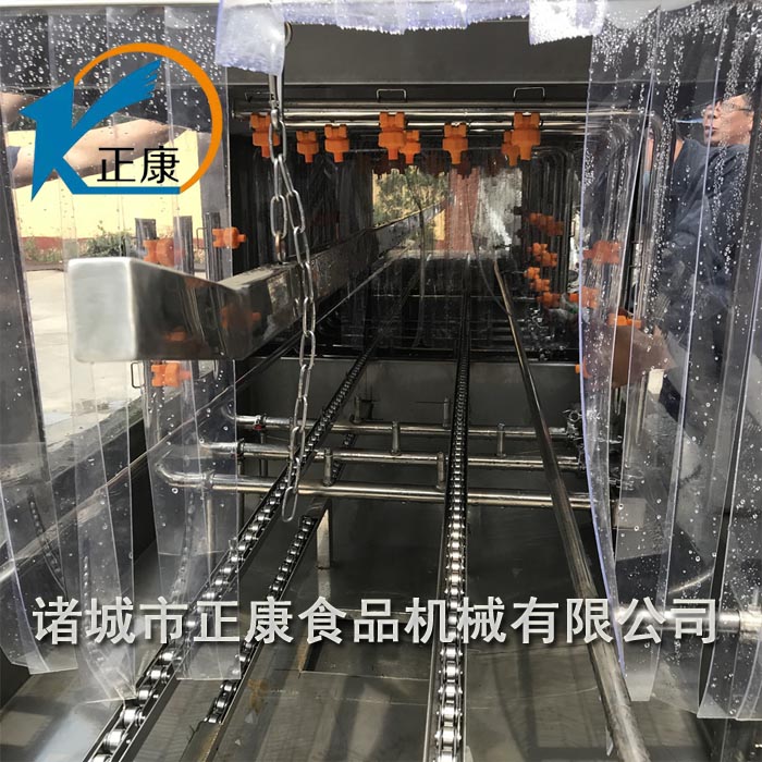設(shè)備原理需清洗的周轉(zhuǎn)筐由不銹鋼鏈條輸入清洗機中,依次通過加溫老堿水→高壓熱水→常溫自來水→消毒水→常溫風刀去水等多道工序,將筐子清洗干凈,同時完成殺菌及風干;特殊筐子清洗時可在熱堿水清洗段后加配毛刷,對筐子底部及左右兩側(cè)進行刷洗,提高清洗效果;采用連續(xù)式清洗,以提高清洗效率;