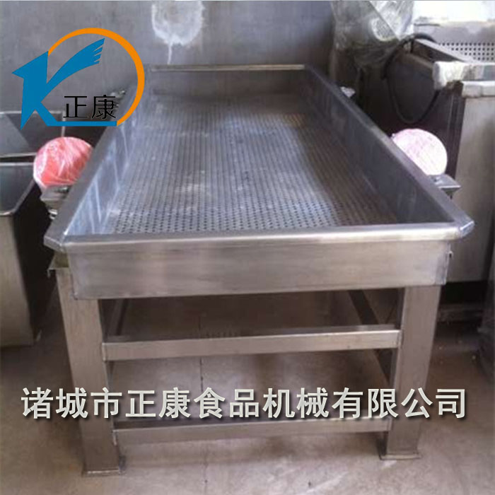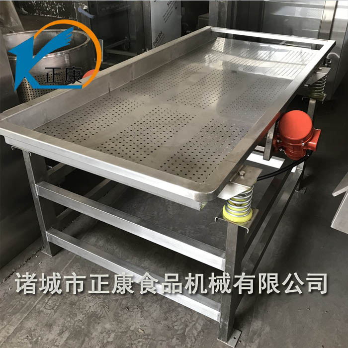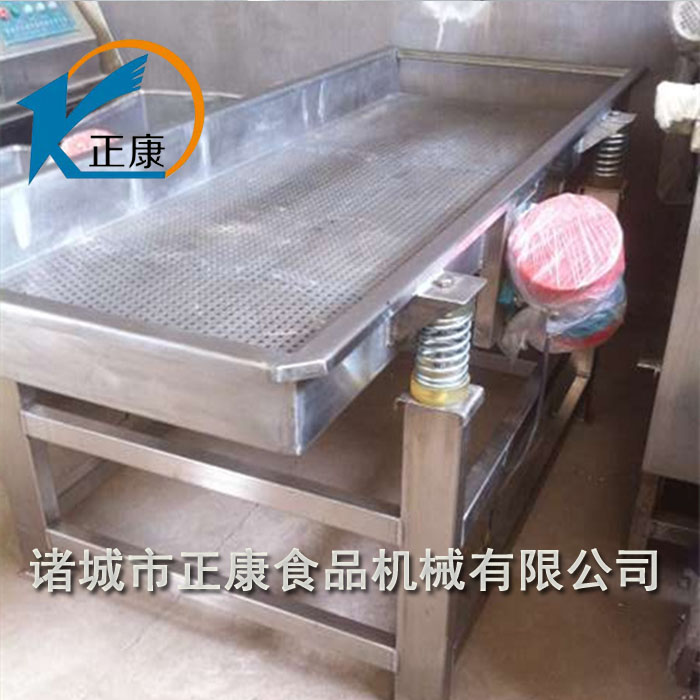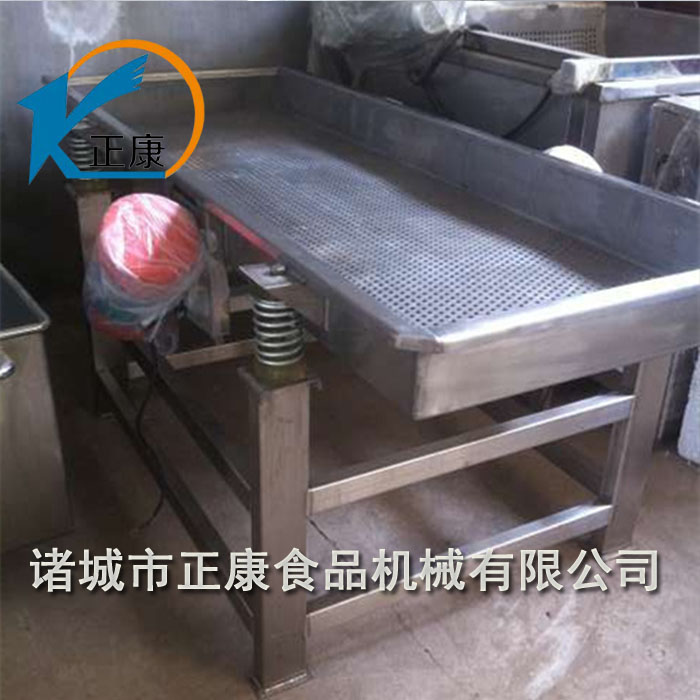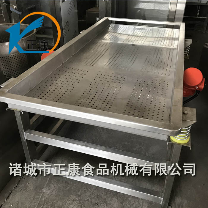 振動瀝水機(jī)又叫瀝水振動篩是一種常用的輕型振動瀝水設(shè)備,該直線振動瀝水篩是利用兩臺轉(zhuǎn)向相反的振動電機(jī)激振的原理,使物料在篩面上作跳躍式直線運動。本機(jī)廣泛應(yīng)用于糧食、蔬菜、食品等各行各業(yè)中,適用于各種物料不同程度的分級和脫水作業(yè)。該設(shè)備也用于巴氏殺菌冷卻后的食品包裝袋表面除水,及蔬菜清洗后表面水分的去除。經(jīng)振動瀝水后,大部分水滴已被去除,剩余水份再經(jīng)風(fēng)干機(jī)吹干后便可裝箱入庫。